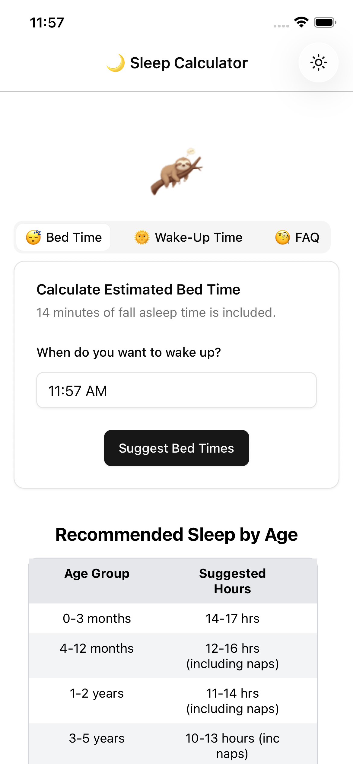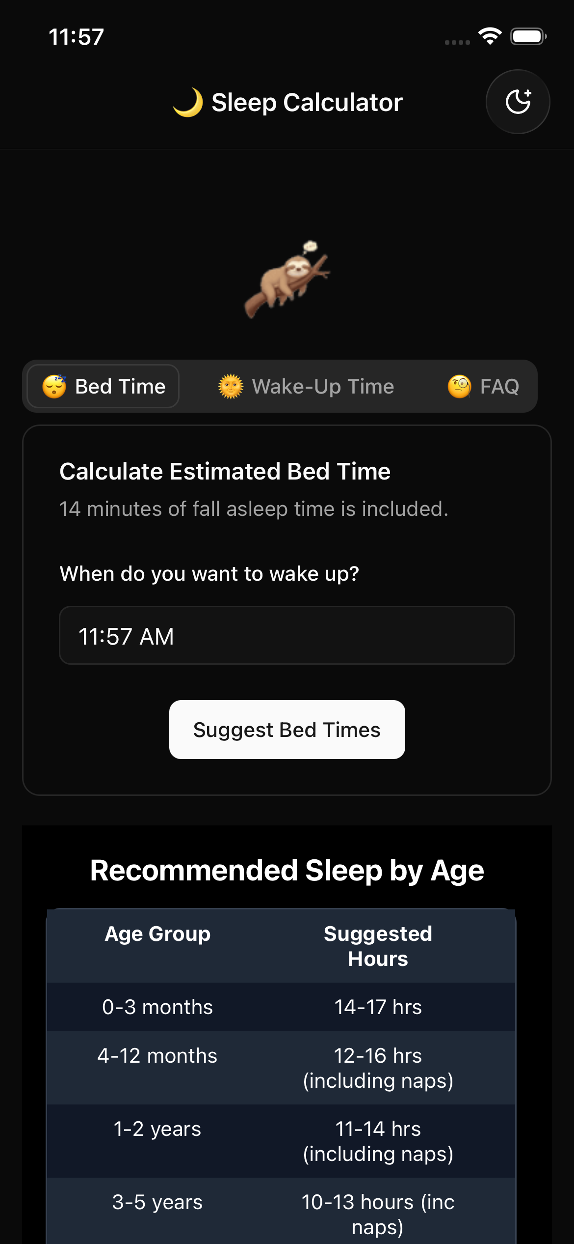 Sleep Calculator - Sloth 🦥